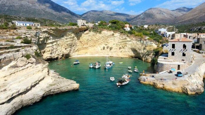 Εν τω μεταξύ, στο βάθος των βράχων όπου είναι χτισμένο το χωριό, θα δείτε δύο σπηλιές, για τις οποίες η μόνη πρόσβαση είναι από τη θάλασσα.
