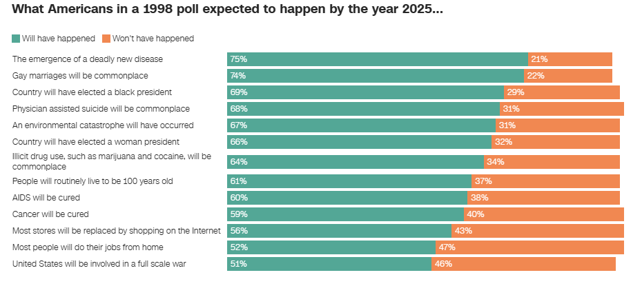 History – A 1998 Gallup poll surveyed public opinion regarding anticipated events in 2025. pic.twitter.com/KMiIeWhnu2