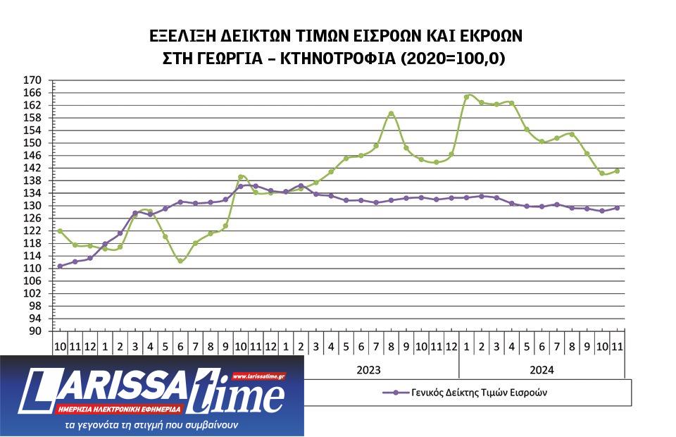 Η εξέλιξη των Δεικτών Τιμών Εισροών και Εκροών με έτος βάσης 2020=100,0 για τον μήνα Νοέμβριο 2024, σύμφωνα με προσωρινά στοιχεία, έχει ως εξής: