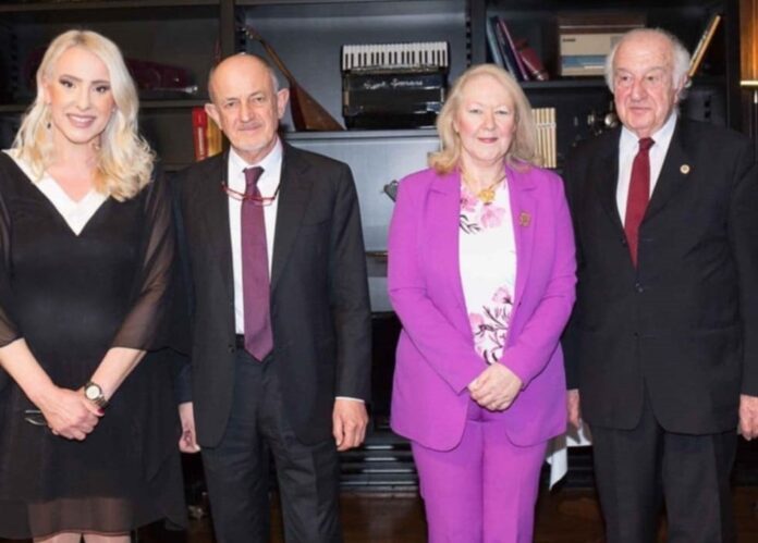 Mε γοητευτικό τρόπο, η αφιερωματική εκδήλωση στην Παγκόσμια Ημέρα της Ελληνικής Γλώσσας, συνέδεσε το μέλλον της γλώσσας που σχετίζεται άμεσα με την παιδική ηλικία των φυσικών ομιλητών, με την παρουσίαση των σύγχρονων επιστημονικών θέσεων της Γλωσσικής Επιστήμης. Μετά τα αναγνώσματα των παιδιών, ακολούθησε στρογγυλό τραπέζι Καθηγητών Γλωσσολογίας, στο οποίο συμμετείχε και ο Καθηγητής κ. κ. Umberto Cini. Οι ομιλητές αναφέρθηκαν στην ιστορία αλλά και τη δυναμική της ελληνικής γλώσσας στο παγκοσμιοποιημένο περιβάλλον, ενώ συζήτησαν για τη θέση της ελληνικής μέσα στη δίνη των διαδοχικών κρίσεων που αντιμετώπισε τα τελευταία χρόνια η Ελλάδα (μνημονιακή, προσφυγική κρίση), αλλά και σε παγκόσμιο επίπεδο (πανδημική, πολεμική, κλιματική κρίση). Όπως τονίστηκε οι πιέσεις που δέχεται η γλώσσα είναι πολλές, αλλά αυτό δεν δικαιολογεί σε καμία περίπτωση κινδυνολογία, ή αίσθημα φόβου, ειδικά στον χώρο της εκπαίδευσης, όπου οι προσκλήσεις είναι τεράστιες. Η εκδήλωση εμπλουτίστηκε με μουσικό πρόγραμμα με την υψίφωνο και συνεργάτιδα της Εθνικής Λυρικής Σκηνής κ. Βάσια Ζαχαροπούλου να κλέβει την παράσταση, και με τη σσυμμετοχή του τραγουδιστή κ. Teodoro Melissinopoulos και τη συνοδεία του μαέστρου κ. Lelo Millo.
