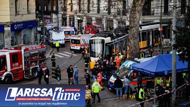 Τραυματίας μεταφέρεται με φορείο, λίγο μετά τον εκτροχιασμό του τραμ στο Μιλάνο