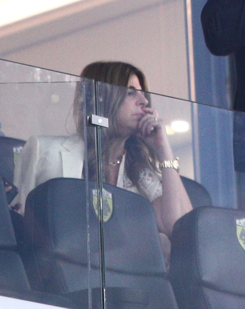 Η σύζυγος και τα τρία μεγαλύτερα παιδιά του προέδρου του Ολυμπιακού ήταν εκεί και παρακολούθησαν με αγωνία το ματς.