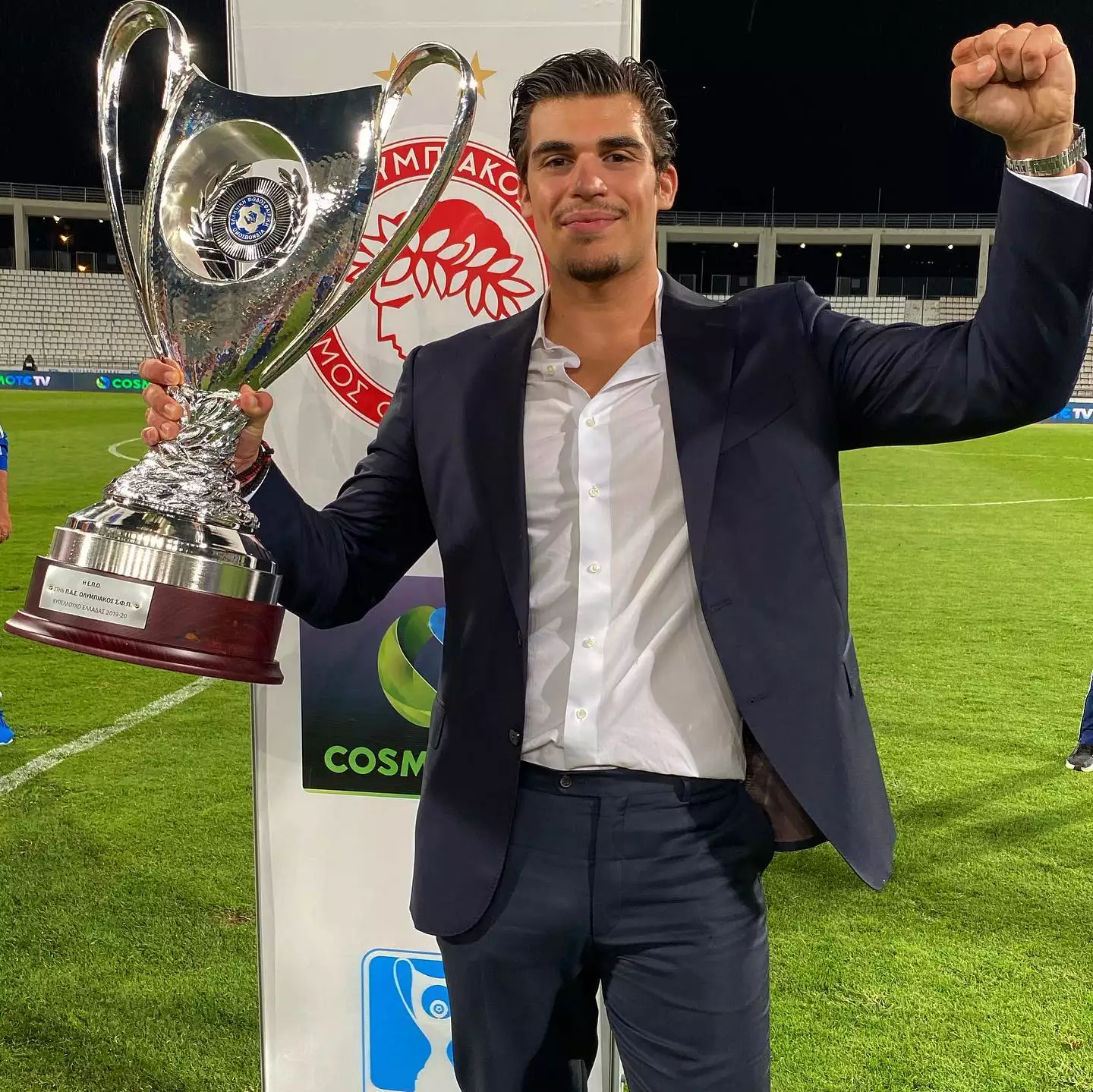 Ο νεαρός Μιλτιάδης Μαρινάκης παραβρέθηκε στο OPAP Arena, όπου μαζί με τον πατέρα του εορτάζαν τη σπουδαία νίκη της ομάδας τους.
