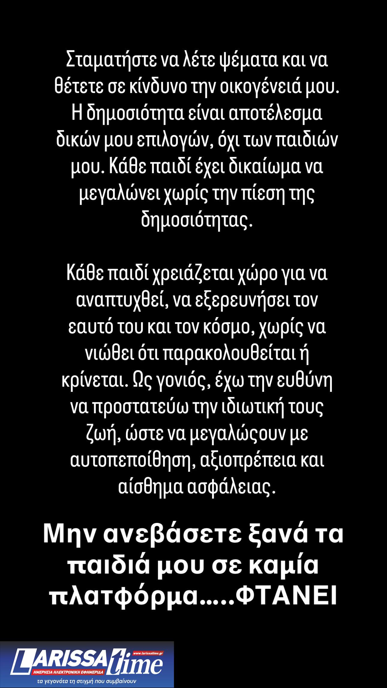 «Μην ανεβάσετε ξανά τα παιδιά μου, σταματήστε να λέτε ψέματα και να θέτετε σε κίνδυνο την οικογένειά μου»