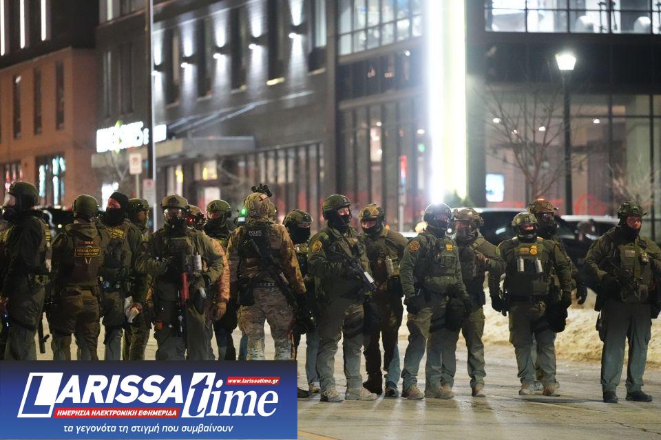 Ομοσπονδιακοί πράκτορες εισέρχονται για να εκκενώσουν ένα ξενοδοχείο κατά τη διάρκεια διαδήλωσης διαμαρτυρίας, ως αντίδραση στις ομοσπονδιακές επιχειρήσεις επιβολής της μεταναστευτικής νομοθεσίας στην πόλη, την Κυριακή 25 Ιανουαρίου 2026, στην Μινεάπολη.