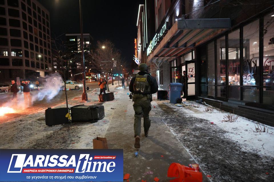 Ομοσπονδιακοί πράκτορες κατά τη διάρκεια διαδήλωσης διαμαρτυρίας ενάντια στις ομοσπονδιακές επιχειρήσεις επιβολής της μεταναστευτικής νομοθεσίας στην πόλη, την Κυριακή 25 Ιανουαρίου 2026 στη Μινεάπολη.