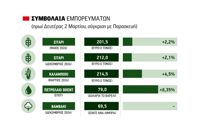 Οι ανταλλαγές πυραυλικών χτυπημάτων σε καίριες ενεργειακές υποδομές της Μέσης Ανατολής έχουν σοβαρό αντίχτυπο στις χρηματιστηριακές τιμές ρεύματος, πετρελαίου, φυσικού αερίου, οι οποίες στο ξεκίνημα της εβδομάδας κινούνται ανοδικά. Να σημειωθεί εδώ πως από τα στενά του Ορμούζ διακινούνται μεγάλες ποσότητες αζωτούχας πρώτης ύλης για λιπάσματα με προορισμό τις αγορές Αιγύπτου και Ευρώπης.