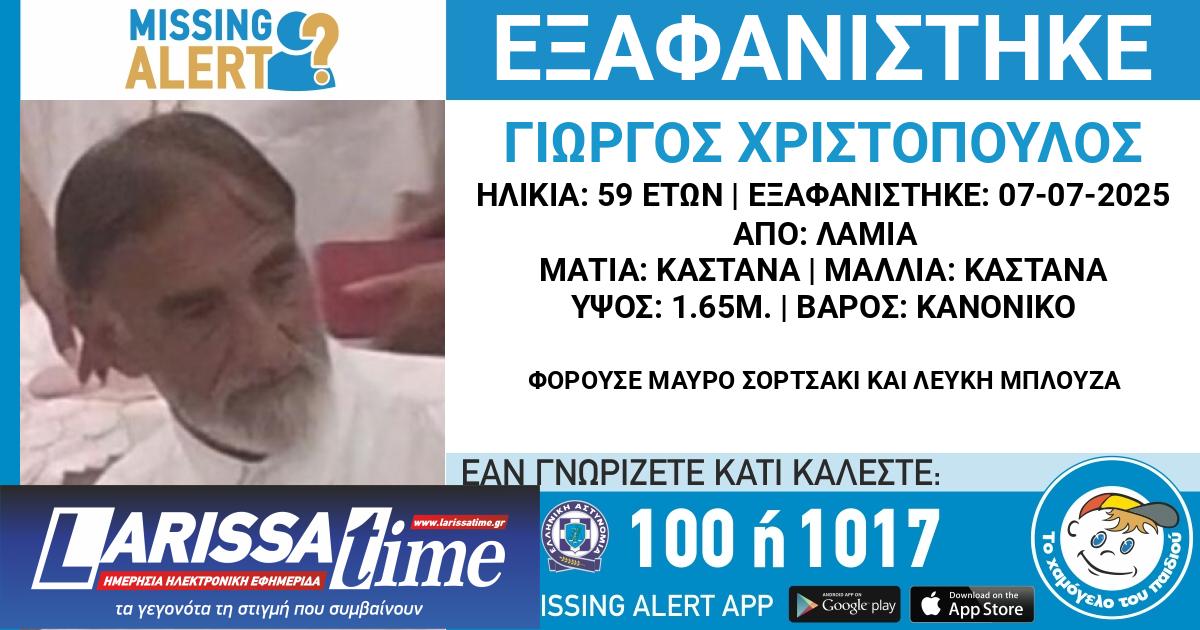 Την κινητοποίηση των αρχών έχει προκαλέσει η υπόθεση εξαφάνισης ενός 59χρονου, στη Λαμία.