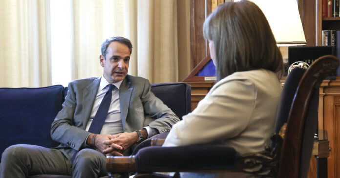 Ο πρωθυπουργός Κυριάκος Μητσοτάκης έχει συνάντηση με την Πρόεδρο της Δημοκρατίας Κατερίνα Σακελλαροπούλου στο Προεδρικό Μέγαρο, στο πλαίσιο των τακτικών μηνιαίων ενημερώσεων.