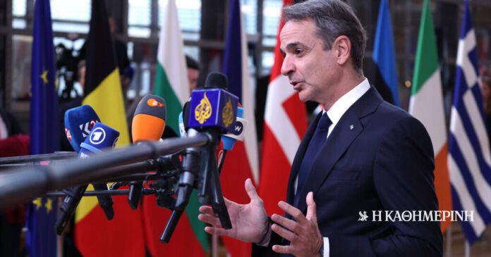 Σε τρεις άξονες κινήθηκε ο Κυριάκος Μηστοτάκης στη δήλωσή του ενόψει της Συνόδου Κορυφής που ξεκινά στις Βρυξέλλες, με το βλέμμα στον πόλεμο της Μέσης Ανατολής.