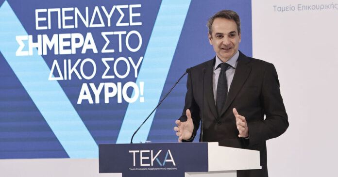 «Τα οφέλη του ΤΕΚΑ θα φανούν σε βάθος χρόνου και θα είναι πολλαπλά», τόνισε ο πρωθυπουργός, Κυριάκος Μητσοτάκης, στην εκδήλωση του Υπουργείου Εργασίας και Κοινωνικής Ασφάλισης για τα δύο χρόνια από την έναρξη λειτουργίας του Ταμείου Επικουρικής Κεφαλαιοποιητικής Ασφάλισης.