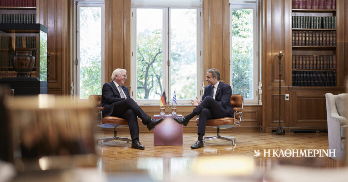 Το ζήτημα των γερμανικών επανορθώσεων και του κατοχικού δανείου το έθεσε και ο πρωθυπουργός, Κυριάκος Μητσοτάκης, στη συνάντηση που είχε με τον πρόεδρο της Γερμανίας, Φρανκ-Βάλτερ Σταϊνμάγερ.