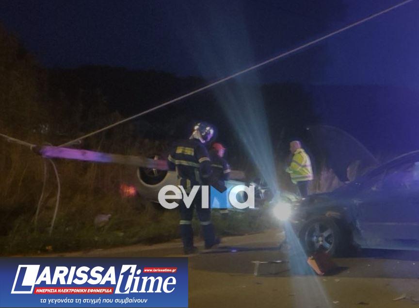 Πρόκειται για μετωπική σύγκρουση των δύο οχημάτων με αποτέλεσμα το ένα όχημα να βγει εκτός δρόμου σε χωράφι και να κόψει στα δύο κολώνα του ΟΤΕ.