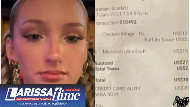 Ο συνολικός λογαριασμός για όσα πήρε ήταν 30 δολάρια, ωστόσο ο πελάτης κατέληξε να προσθέσει ένα αστρονομικό ποσό ως φιλοδώρημα – όλα αυτά αποδεικνύονται από μία φωτογραφία της απόδειξης που ανέβασε η Scarlett.