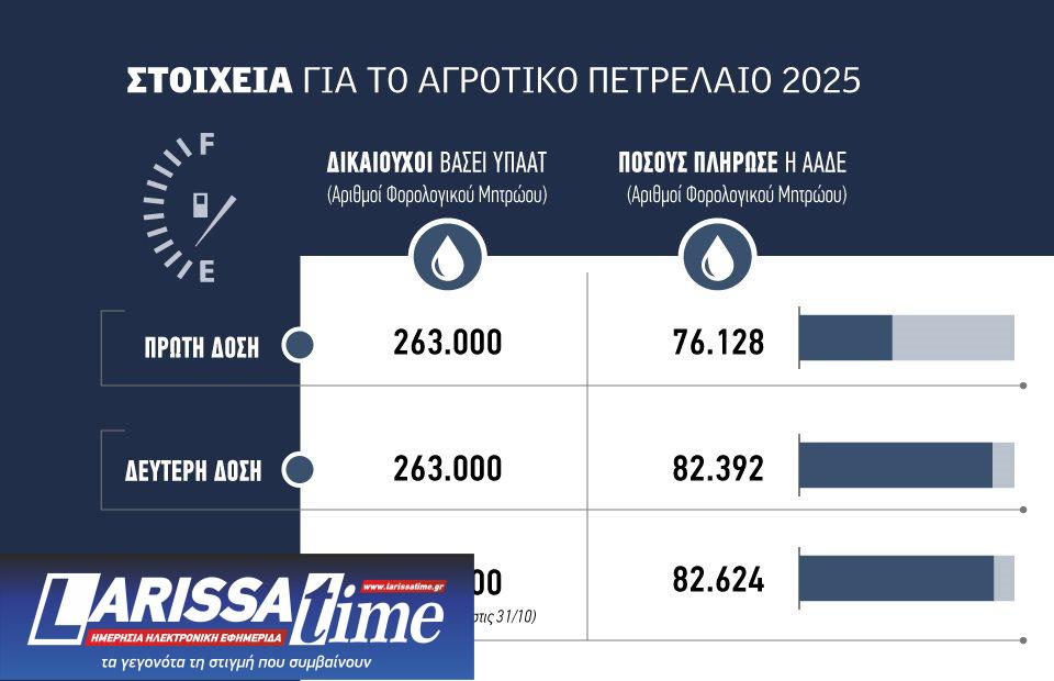 Ολοκληρώθηκε σήμερα η καταβολή της τρίτης δόσης του Ειδικού Φόρου Κατανάλωσης αγροτικού πετρελαίου για το 2025.