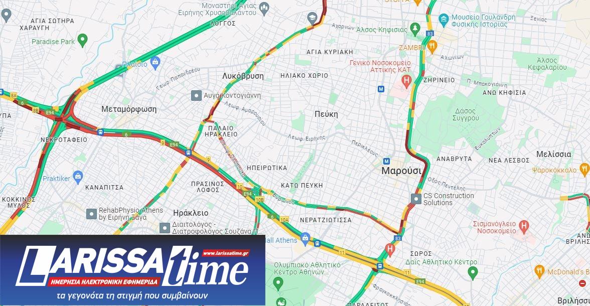 Καθυστερήσεις 15΄-20΄ στο ρεύμα προς Αεροδρόμιο από Μεταμόρφωση (είσοδος από Λαμία) έως Κηφισίας.