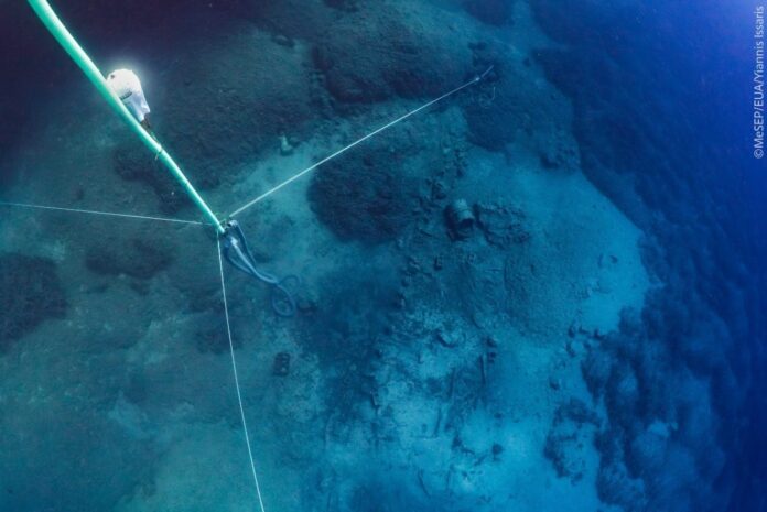 Αντικείμενα από τον εξαρτισμό, θραύσματα σκευών καθημερινής χρήσης, αλλά και από την εξωτερική επιχάλκωση του πετσώματος, τμήμα πήλινης πλάκας που πιθανόν σχετίζεται με τη μόνωση της εστίας, καθώς κι ένα θραύσμα μαρμάρινης πλάκας με διακοσμητική σταγόνα, που προέρχεται από το πολύτιμο φορτίο του πλοίου «Μέντωρ», είναι μερικά από τα ευρήματα της φετινής συστηματικής υποβρύχιας αρχαιολογικής έρευνας της Εφορείας Εναλίων Αρχαιοτήτων στο ιστορικό ναυάγιο, όπως πληροφορεί σημερινή ανακοίνωση του ΥΠΠΟ. Η έρευνα συνεχίσθηκε το 2025, υπό την διεύθυνση του αρχαιολόγου, Δρ. Δημητρίου Κουρκουμέλη-Ροδοστάμου, αναπληρωτή προϊστάμενου της Υπηρεσίας.