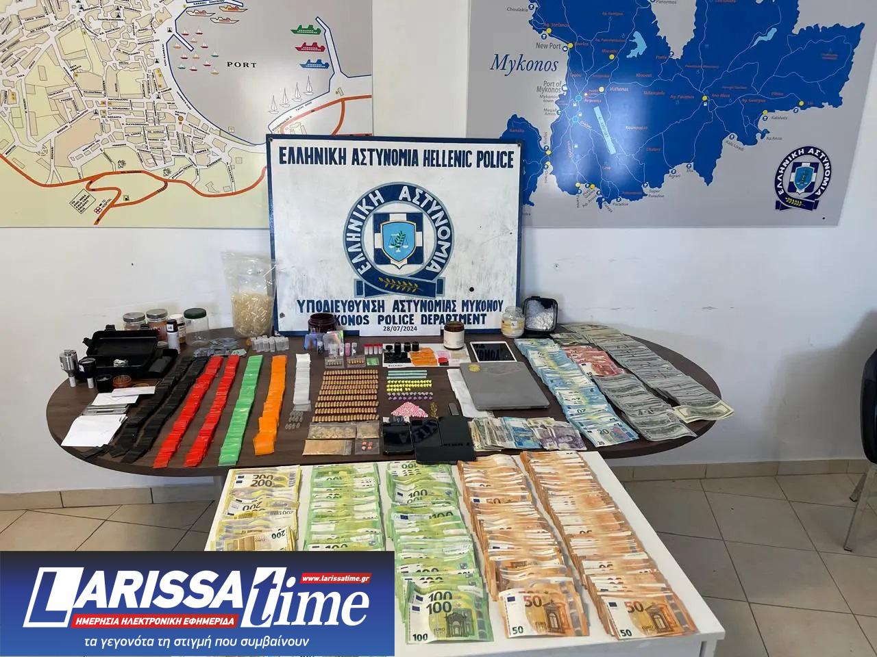 Στην ανακοίνωσή της, η ΕΛ.ΑΣ. αναφέρει και ότι προηγήθηκε καταγγελία, σύμφωνα με την οποία, άγνωστος δράστης κινείται με όχημα στους δρόμους της Μυκόνου και διακινεί ναρκωτικές ουσίες, κάνοντας «delivery» παραδόσεις.
