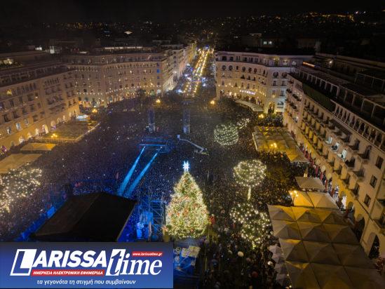 Ο δήμαρχος Θεσσαλονίκης, Στέλιος Αγγελούδης, δίνοντας το σύνθημα για να ανάψουν τα χιλιάδες λαμπάκια στο εντυπωσιακό έλατο, ύψους 18 μέτρων, που στήθηκε στην κεντρική πλατεία της πόλης ευχήθηκε σε όλους «χρόνια πολλά και καλές γιορτές». Την ίδια ώρα αμέτρητα πυροτεχνήματα φώτισαν τον ουρανό της πόλης.