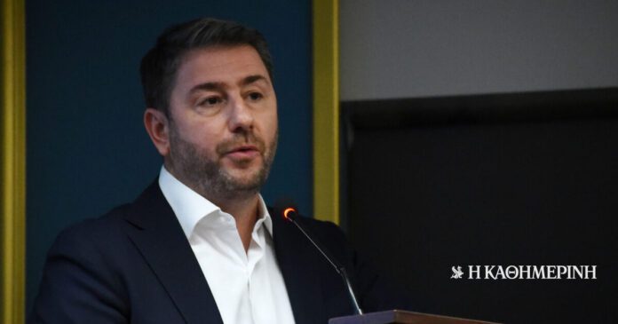 Σχετικά με τον χαρακτηρισμό του ΠΑΣΟΚ ως «πράσινου ΣΥΡΙΖΑ», ο πρόεδρος του κόμματος ανέφερε πως «η Νέα Δημοκρατία είναι σε ένα βέρτιγκο. Από το τι έχει πει σήμερα ο εκπρόσωπος Τύπου της Νέας Δημοκρατίας και το τι έχει πει η κυρία Κεραμέως, εγώ καταλαβαίνω ότι είχαν συνηθίσει αλλιώς, είχαν καλομάθει. Τώρα όμως αλλάξανε τα πράγματα».
