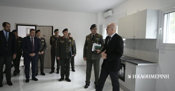 Στο Χαΐδάρι βρέθηκε χθες το πρωί ο κ. Δένδιας, όπου εγκαινίασε συνολικά 37 νέα διαμερίσματα στο στρατόπεδο «Καραϊσκάκης Β΄», στο πλαίσιο της ανέγερσης κατοικιών για τη στέγαση στρατιωτικών. Στον ίδιο χώρο ήδη κατασκευάζονται τέσσερα ακόμη συγκροτήματα με στόχο την ανέγερση συνολικά 172 κατοικιών. Πρόκειται μόνο για ένα τμήμα από την υλοποίηση των εξαγγελιών για κατασκευή περίπου 1.000 κατοικιών κάθε χρόνο έως το 2030 για την εξυπηρέτηση των αναγκών των στρατιωτικών.