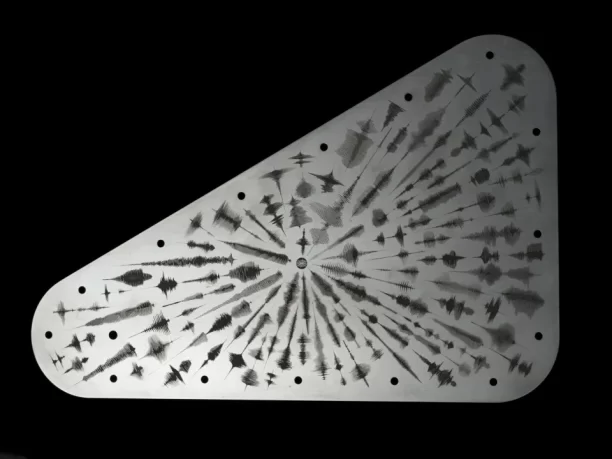 Η εξωτερική πλευρά της πλάκας φέρει κυματομορφές, ή οπτικές αναπαραστάσεις ηχητικών κυμάτων, που απεικονίζουν τη λέξη «νερό» σε 103 γλώσσες από όλο τον κόσμο. Στην καρδιά της σπείρας υπάρχει ένα σύμβολο που σημαίνει «νερό» στην Αμερικανική Νοηματική Γλώσσα. Ο ήχος των ομιλούμενων γλωσσών που συνέλεξαν οι γλωσσολόγοι για λογαριασμό της NASA είναι διαθέσιμος στον ιστότοπό της.