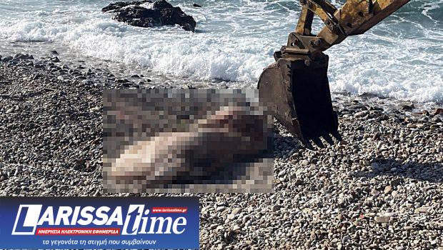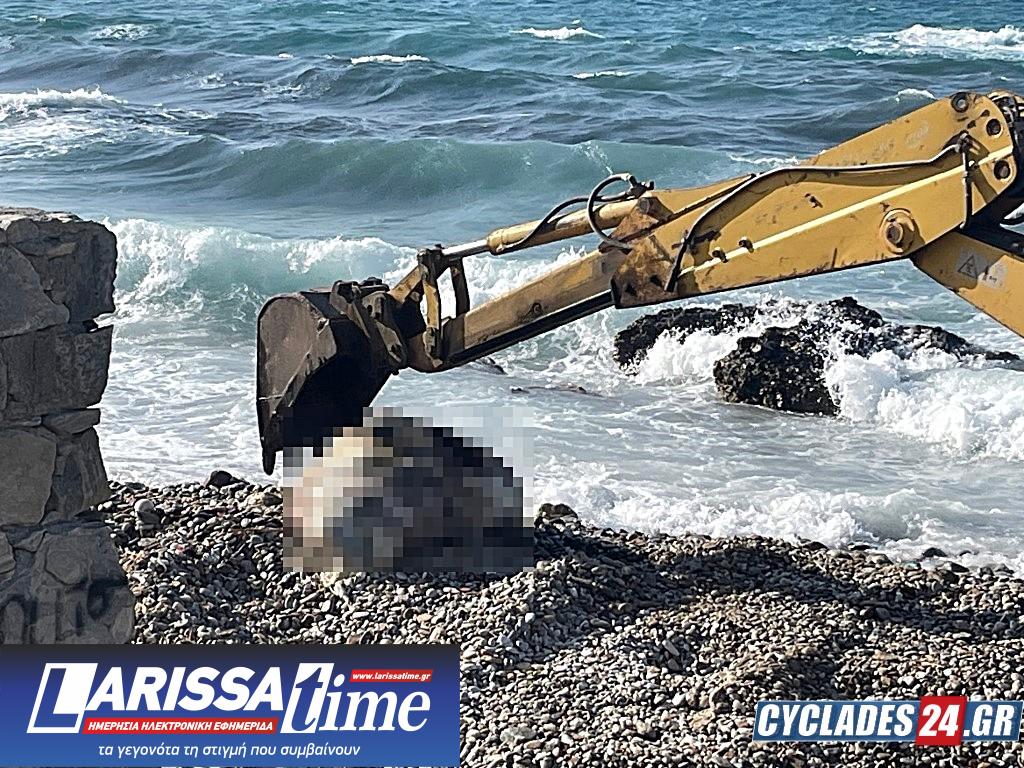 Αμέσως κινητοποιήθηκε το Λιμενικό, ενώ στο σημείο μετέβησαν ένα σκαπτικό μηχάνημα και ένα φορτηγό, προκειμένου να απομακρύνουν το μεγάλο ζώο από την ακτή.