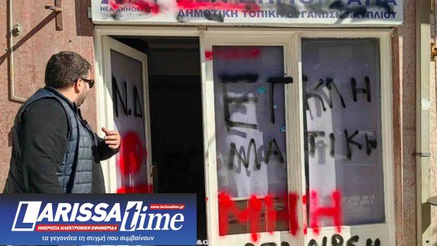 Τα γραφεία της τοπικής οργάνωσης της ΝΔ που δέχτηκαν την επίθεση τα ξημερώματα