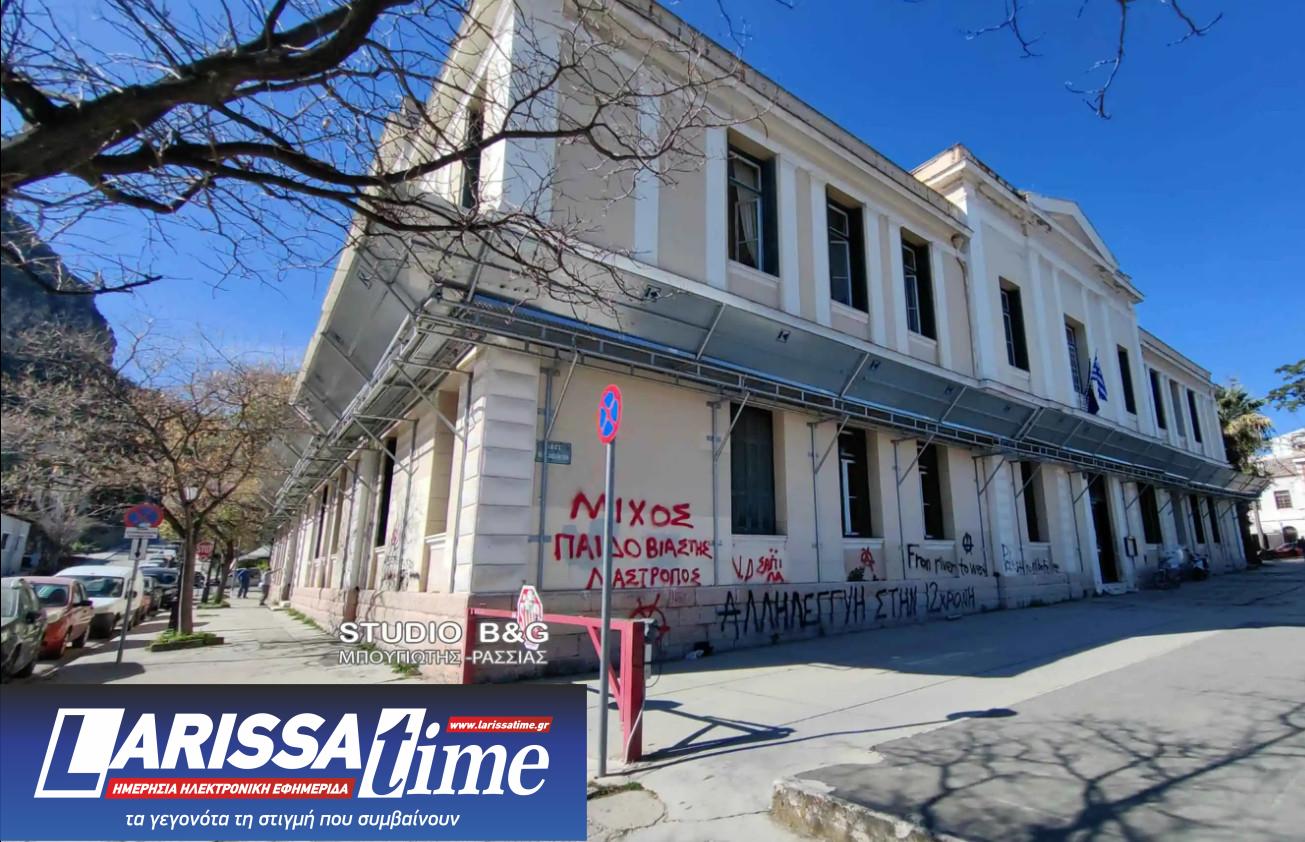 Συνθήματα με κόκκινη και μαύρη μπογιά για Μίχο και Τέμπη έγραψαν άγνωστοι στα γραφεία της ΝΔ και στα Δικαστήρια
