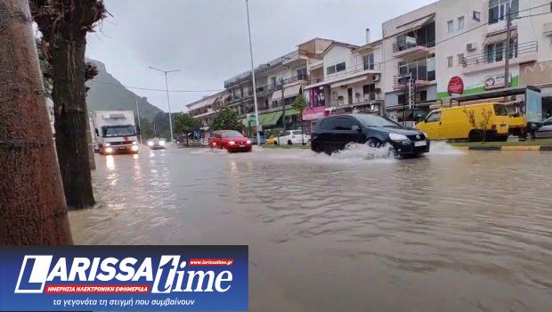 Στιγμιότυπο από τους πλημμυρισμένους δρόμους στο Ναύπλιο
