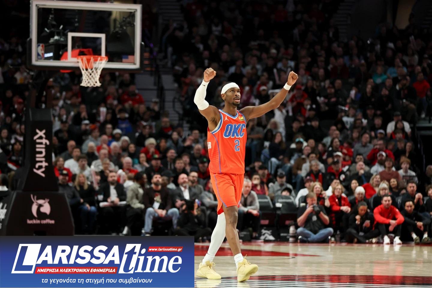 Τα ξημερώματα πέτυχαν την 20ή νίκη τους σε 21 αγώνες, επικρατώντας με 123-115 στο Πόρτλαντ, παρά το triple-double του Ισραηλινού, Ντένι Αβντίγια (31 πόντοι, 19 ριμπάουντ, 10 ασίστ). Υπενθυμίζεται, ότι η μοναδική ήττα των Θάντερ αυτήν την σεζόν, σημειώθηκε στις 5 Νοεμβρίου από τους Τρέιλ Μπλέιζερς.