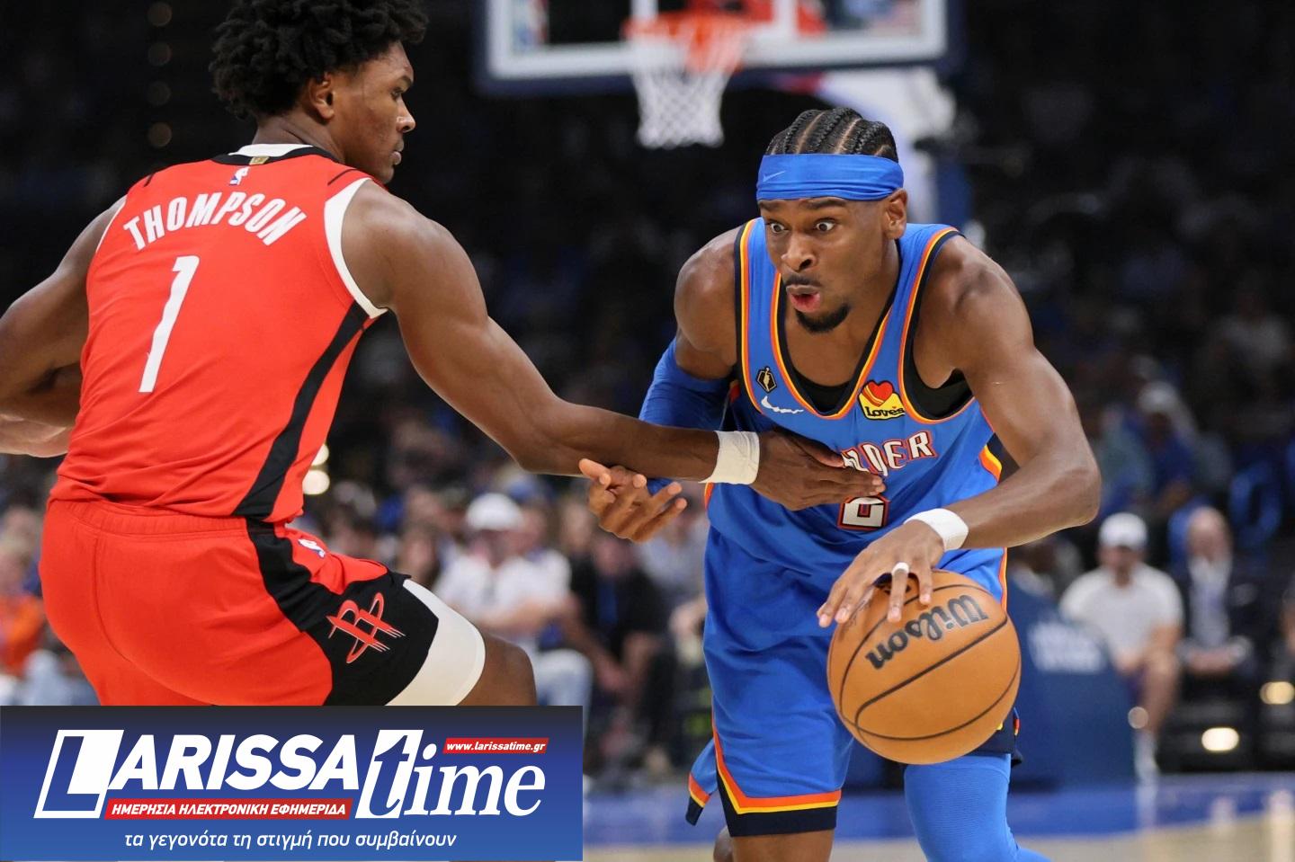 Στην Οκλαχόμα Σίτι, ο Σέι Γκίλτζιους-Αλεξάντερ συνέχισε από εκεί που σταμάτησε πέρυσι, οδηγώντας τους Θάντερ σε νίκη-θρίλερ επί των Χιούστον Ρόκετς με 125-124, χάρη σε δύο εύστοχες βολές του 2,3’’ πριν από το τέλος της δεύτερης παράτασης. Ο Καναδός σταρ ολοκλήρωσε το ματς με 35 πόντους, επιβεβαιώνοντας πως και φέτος θα είναι ο ηγέτης της ομάδας.