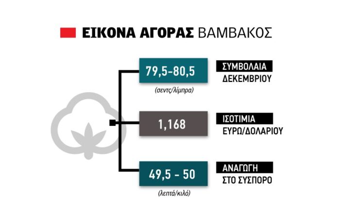 Τη Δευτέρα, τα συμβόλαια Δεκεμβρίου (νέας σοδειάς) στο χρηματιστήριο έκλεισαν στα 80,97 σεντς ανά λίμπρα (+0,39 σεντς), με την ανοδική τάση να συντηρείται και την Τρίτη και να ξεπερνάει τα 81 σεντς. Έτσι, μαθηματικά η αναγωγή στο σύσπορο δίνει τιμή που ξεπερνά τα 50 λεπτά λεπτά το κιλό. Την ίδια στιγμή, η ισοτιμία του ευρώ με το δολάριο ανέρχεται την ώρα που γράφονται αυτές οι γραμμές στο 1,17.