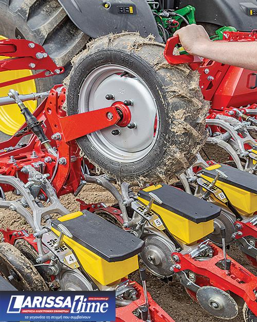 Οι ξεχωριστοί σπορείς είναι ενσωµατωµένοι στο πίσω µέρος της γραµµής εργαλείων. Αντί για τρείς πείρους, κάθε µονάδα διατηρείται στην θέση της µέσω δυο τεντωτών. Ωραία λεπτοµέρεια είναι ότι ο τροχός που θέτει το βάθος βρίσκεται µεταξύ των σπορέων και µπορεί εύκολα να φύγει από την µέση για καλύτερη συντήρηση. Αυτό επιτυγχάνεται χάρη στον ενσωµατωµένο διακόπτη και βίδες που είναι ασφαλισµένες, ώστε να µην πέφτουν. Άλλη µια τροποποίηση είναι η ανάρτηση του ελαστικού που βρίσκεται πλέον και στις δύο πλευρές του.