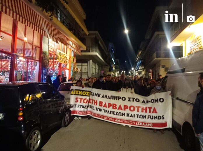 Πολυπληθής πορεία διαμαρτυρίας για τους πλειστηριασμούς βρίσκεται σε εξέλιξη αυτή την ώρα στα Πετράλωνα.
