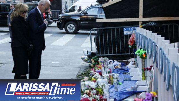 Ο Μπάιντεν παρέμεινε με το κεφάλι κατεβασμένο μπροστά σε αυτοσχέδιο μνημείο για τα θύματα