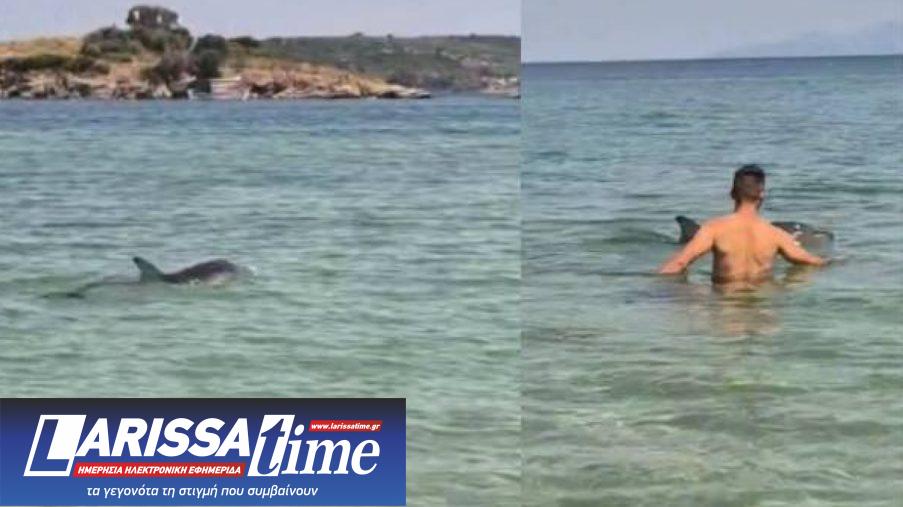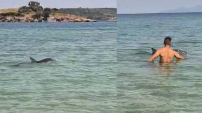 Νέα Πέραμος Καβάλας: Νεαρό δελφίνι κάνει βόλτες στα ρηχά! (βίντεο)