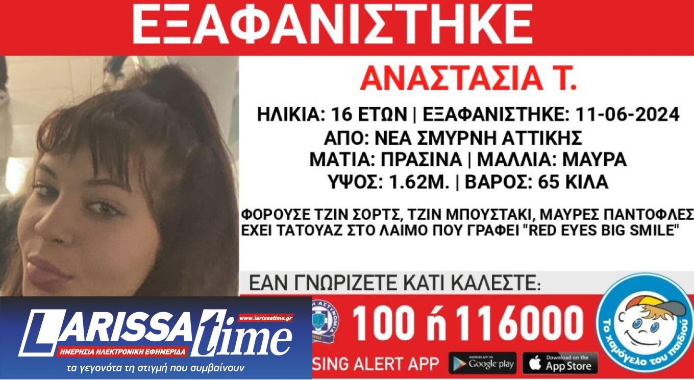 Συναγερμός έχει σημάνει στις Αρχές για την εξαφάνιση της 16χρονης Αναστασίας Τ. από χώρο παιδικής προστασίας στη Νέα Σμύρνη.