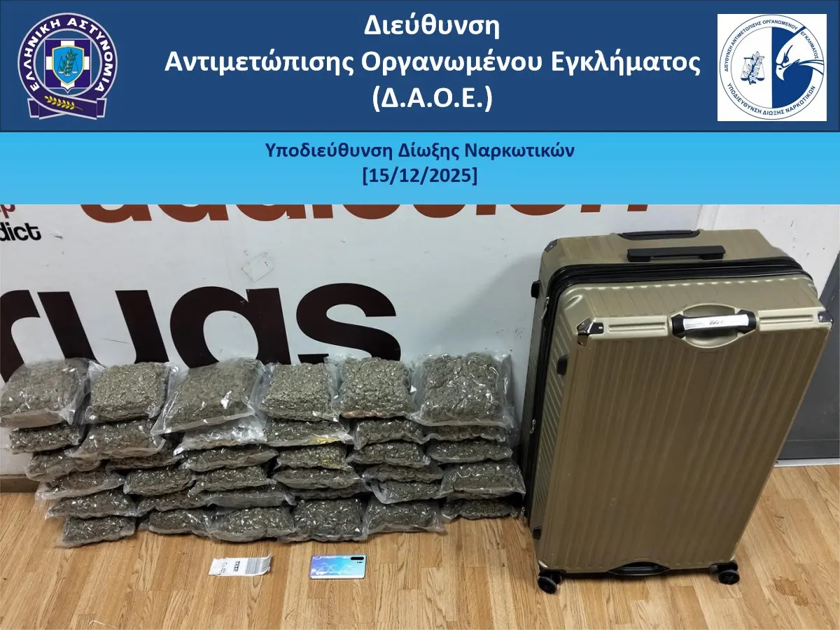 Υπενθυμίζεται ότι το απόγευμα της Κυριακής 14 Δεκεμβρίου 2025, συνελήφθη στο «Ελευθέριος Βενιζέλος» 21χρονος αλλοδαπός, μέλος διεθνούς εγκληματικής ομάδας, με περισσότερα από 18 κιλά ναρκωτικών στη βαλίτσα του.