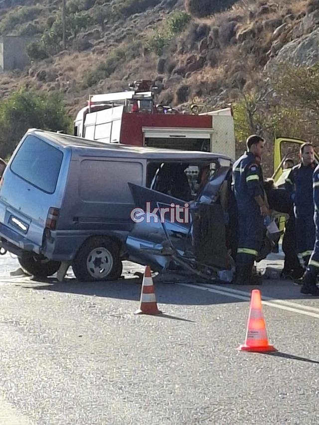 Το τροχαίο σημειώθηκε όταν κάτω από άγνωστες συνθήκες ένα αυτοκίνητο συγκρούστηκε μετωπικά με διερχόμενο φορτηγάκι τύπου κλούβα, σύμφωνα με το ekriti.gr. Από την σύγκρουση τραυματίστηκε θανάσιμα μία γυναίκα ενώ δύο ακόμα τραυματίστηκαν ελαφρά.