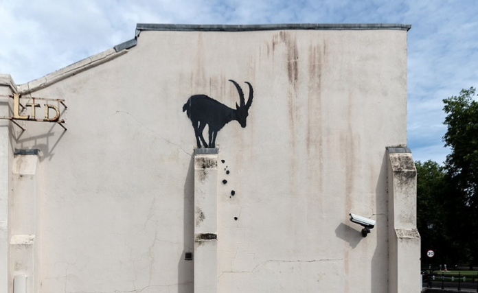 Το γκράφιτι που βρίσκεται σε τοίχο κτιρίου κοντά στη γέφυρα Kew στο Ρίτσμοντ, στο νοτιοδυτικό Λονδίνο, δείχνει την κατσίκα να ισορροπεί σε ένα τοίχο, βράχους να πέφτουν από κάτω και μια κάμερα κλειστού κυκλώματος στραμμένη προς το μέρος της, όλα δημιουργημένα με το στιλ με το χαρακτηριστικό στένσιλ του Banksy. Δεν είναι σαφές ποιο είναι το μήνυμα πίσω από το έργο, καθώς ο καλλιτέχνης δεν δημοσίευσε με την εικόνα στον λογαριασμό του στο Instagram λεζάντα.
