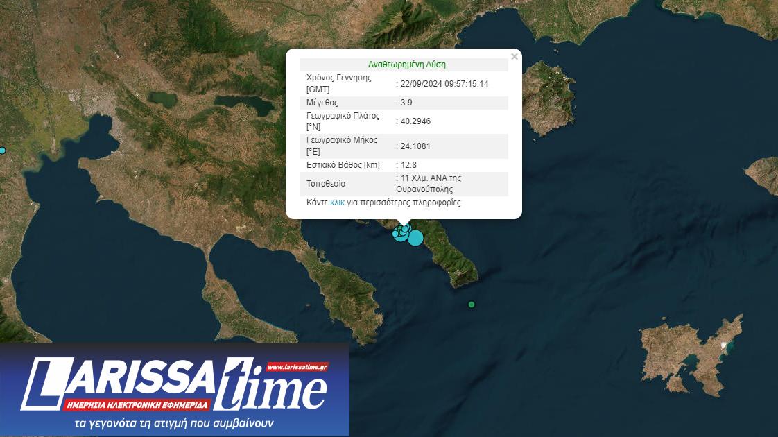 Ο σεισμός των 4,6 Ρίχτερ έλαβε χώρα στις 12:50 ώρα Ελλάδος και τον διαδέχτηκε μια ακόμη δόνηση, μεγέθους 3,9 Ρίχτερ, 7 λεπτά αργότερα με επίκεντρο 11 χιλιόμετρα Ανατολικά της Ουρανούπολης.