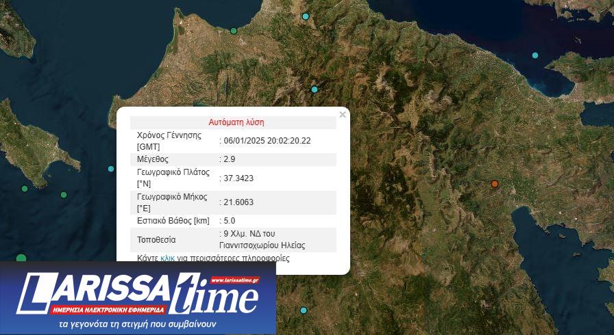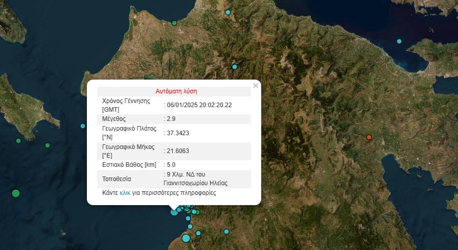 Πριν από λίγο καταγράφηκε και νέα σεισμική δόνηση 2,9 βαθμών της κλίμακας Ρίχτερ. Σύμφωνα με την αυτόματη λύση του Γεωδυναμικού Ινστιτούτου Αθηνών, το επίκεντρο εντοπίζεται στα 9 χιλιόμετρα νοτιοδυτικά του Γιαννιτσοχωρίου και το εστιακό βάθος εκτιμάται στα 5 χιλιόμετρα.