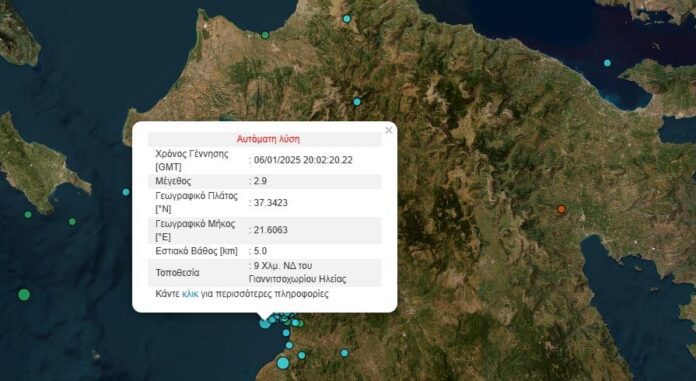 Η γη εξακολουθεί να σείεται στην Ηλεία, όπου έχουν σημειωθεί και νέοι σεισμοί μετά τα 4,5 Ρίχτερ που έπληξαν την περιοχή το πρωί της Δευτέρας (6/1).