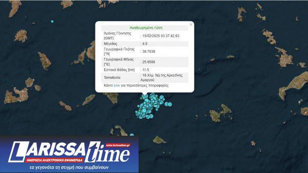 Οπως αναφέρει η ανακοίνωση, στις 05:37 σήμερα Σάββατο το σεισμολογικό δίκτυο κατέγραψε ασθενή σεισμική δόνηση μεγέθους 4 βαθμών της κλίμακας Ρίχτερ με επίκεντρο τον υποθαλάσσιο χώρο 16 χιλιόμετρα νοτιοδυτικά της Αρκεσίνης Αμοργού.