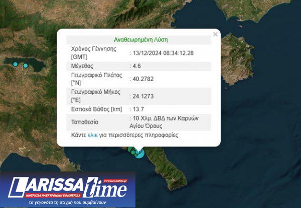 Το επίκεντρο της δόνησης εντοπίζεται στον θαλάσσιο χώρο 10 χλμ. δυτικά-βορειοδυτικά των Καρυών Αγίου Όρους.