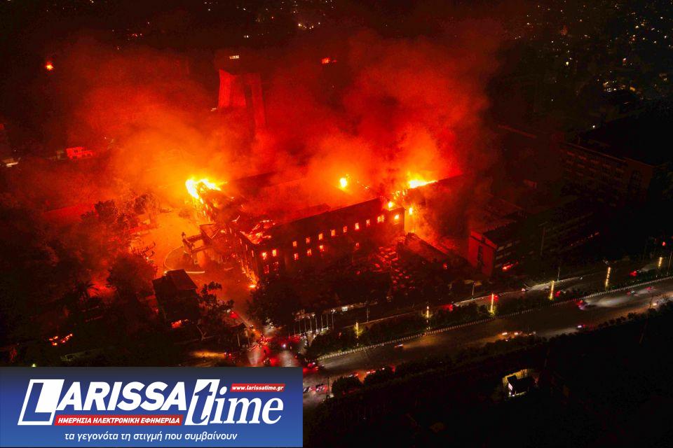 Μαύροι καπνοί πάνω από κτήρια που παραδόθηκαν στις φλόγες κατά τα βίαια επεισόδια