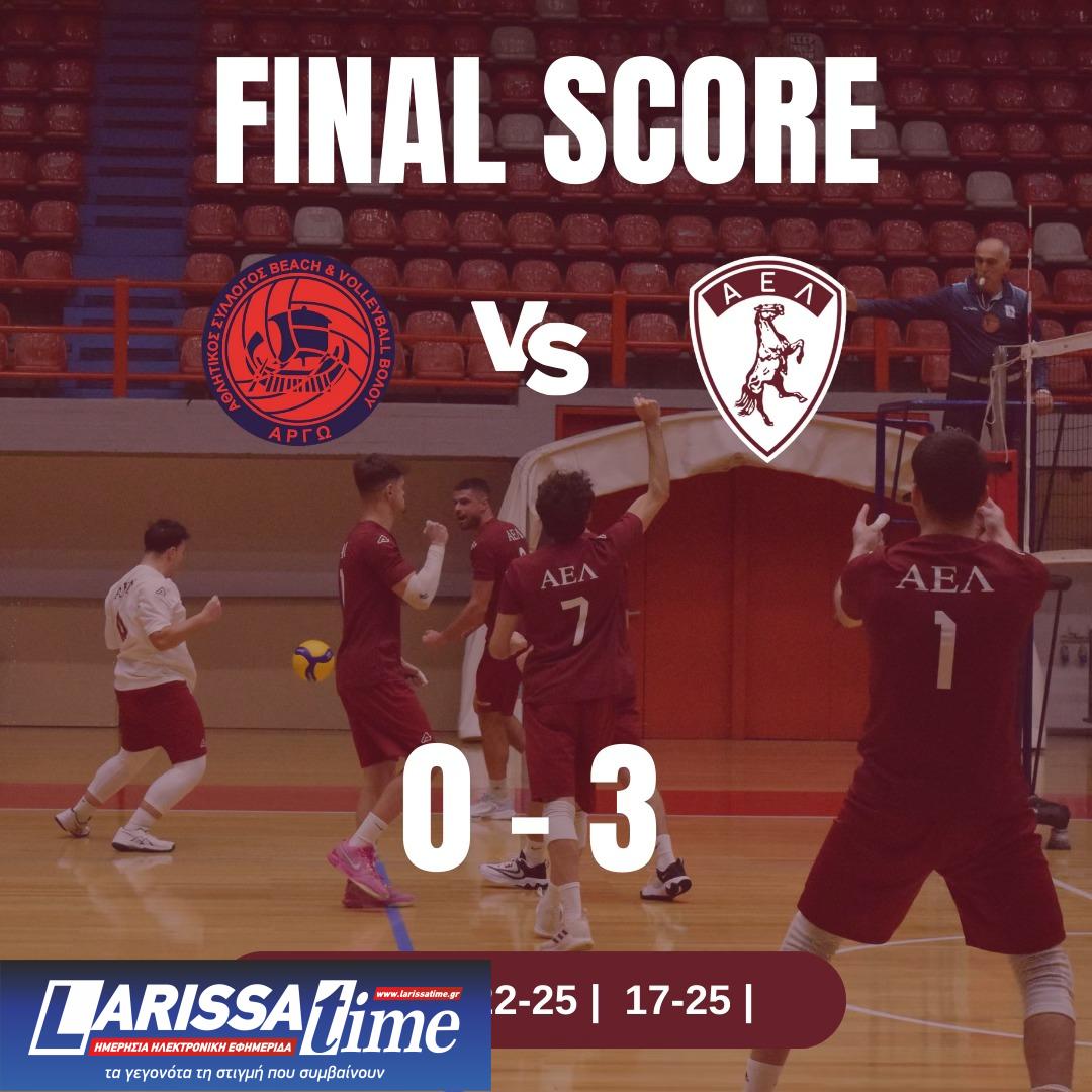 Η ΑΕΛ Ανδρών Βόλεϊ πήρε μια καθαρή νίκη με 0-3 απέναντι στην Αργώ Βόλου, σε έναν αγώνα με καλό ρυθμό και όμορφες φάσεις και από τις δύο ομάδες. Οι βυσσινί ήταν ανώτεροι σε κρίσιμα σημεία, δείχνοντας την ποιότητά τους και εξασφαλίζοντας έτσι την πρώτη θέση στο κύπελλο χωρίς ιδιαίτερα προβλήματα. Το παιχνίδι ήταν ιδιαίτερης σημασίας, αφού το αποτέλεσμα θα καθόριζε την έδρα του τελικού του κυπέλλου ανδρών. Έτσι, ο τελικός μεταφέρεται στο κλειστό της Νεάπολης εκεί όπου η ΑΕΛ θα κληθεί να υπερασπιστεί τον περσινό τίτλο της και να κατακτήσει ακόμα ένα τρόπαιο.