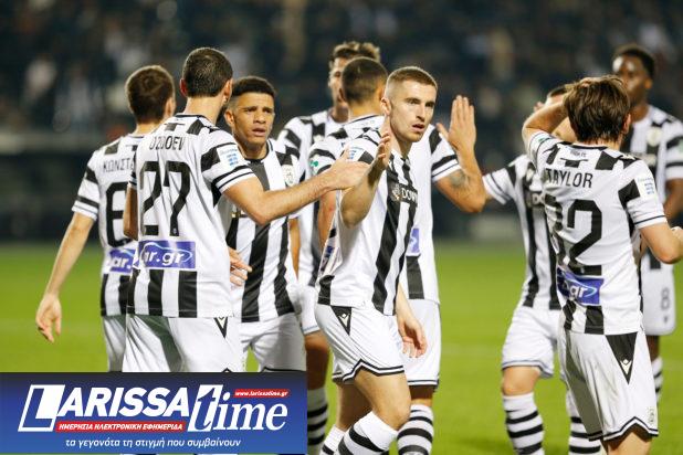 Οι «ασπρόμαυροι» έπειτα από ένα κάτω του μετρίου πρώτο ημίχρονο, βελτιώθηκαν φτάνοντας στο τρίτο διαδοχικό «τρίποντο» με τα γκολ των Γιώργου Γιακουμάκη (49’) και Μαγκομέντ Οζντόεφ (73’, 80’), με τους Θεσσαλούς να υστερούν σημαντικά στο επιθετικό κομμάτι.