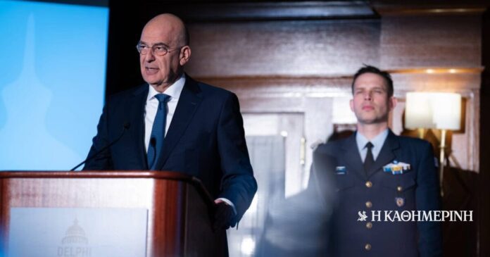 Στην ομιλία του στο 6ο Φόρουμ των Δελφών στην Ουάσιγκτον, που διοργανώνεται σε συνεργασία με την αγγλόφωνη έκδοση της εφημερίδας «Η Καθημερινή» και το Ελληνοαμερικάνικο Συμβούλιο Ηγεσίας (HALC), ο Νίκος Δένδιας έθεσε το ερώτημα «τι εννοούμε με το “εμείς”;» «Ποιοι είναι οι σύμμαχοι των ΗΠΑ στην προσπάθεια σταθεροποίησης του κόσμου;»